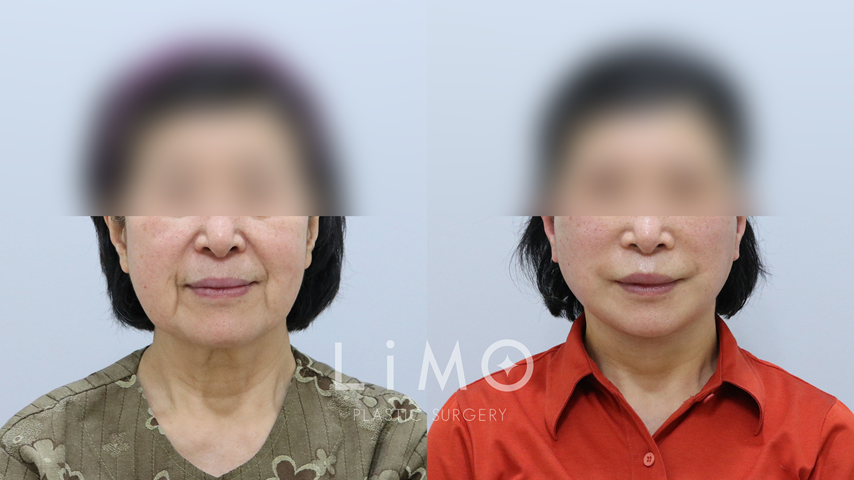 2년 전 안면거상 수술 후 직후부터 효과가 아쉬워 2차례 실리프팅으로 A/S 받으셨음. 마찬가지로 다른 종류의 리프팅을 고려 중인 상태셨으나 피부가 처진 정도로 보아 제거량이 많을 것으로 예상되어 재수술 시행
