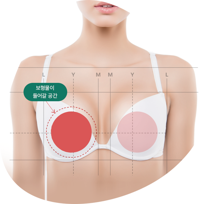 밑빠짐, 윗볼록 없이 예쁜 가슴 실루엣, 비대칭 가슴 교정