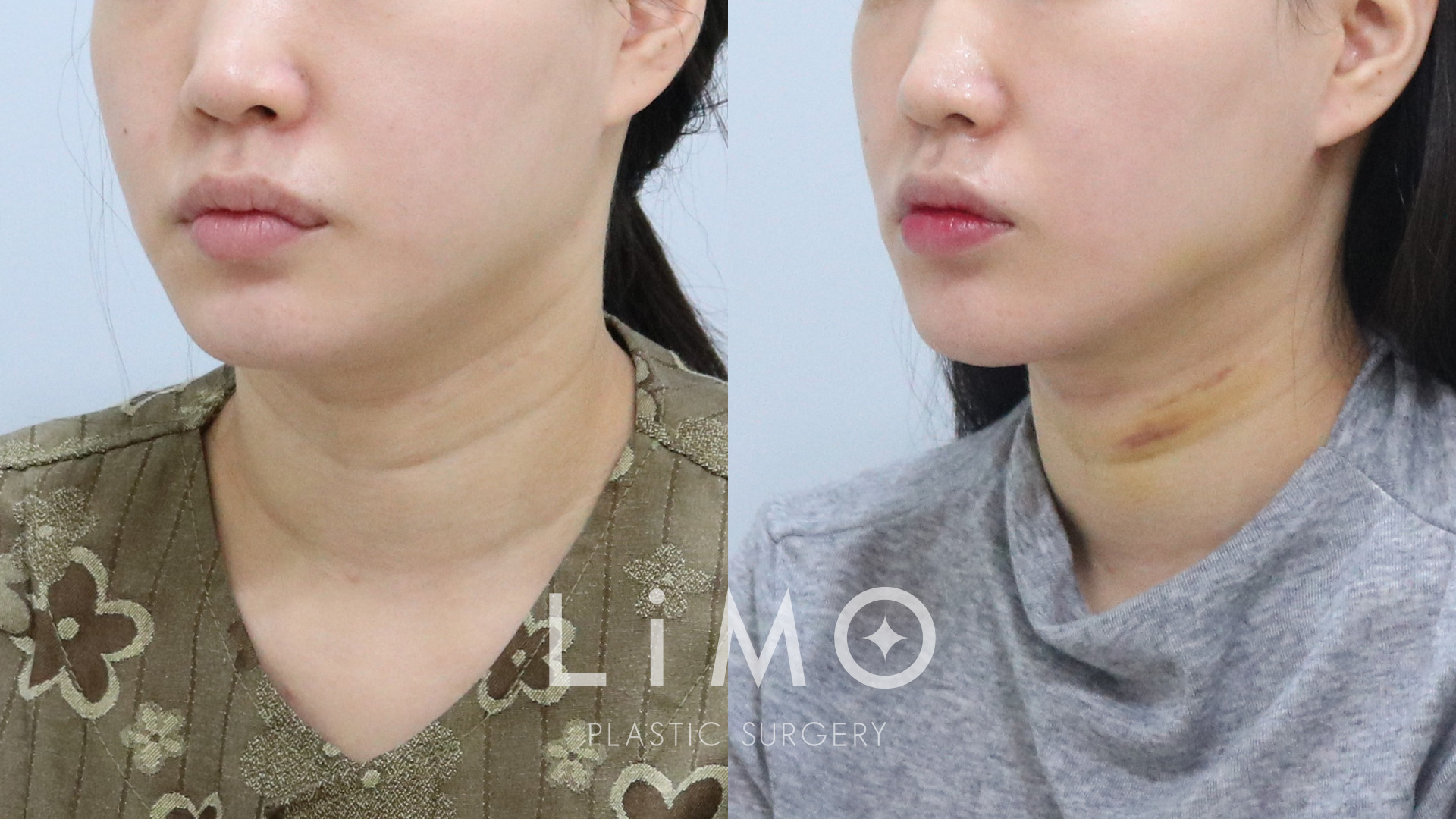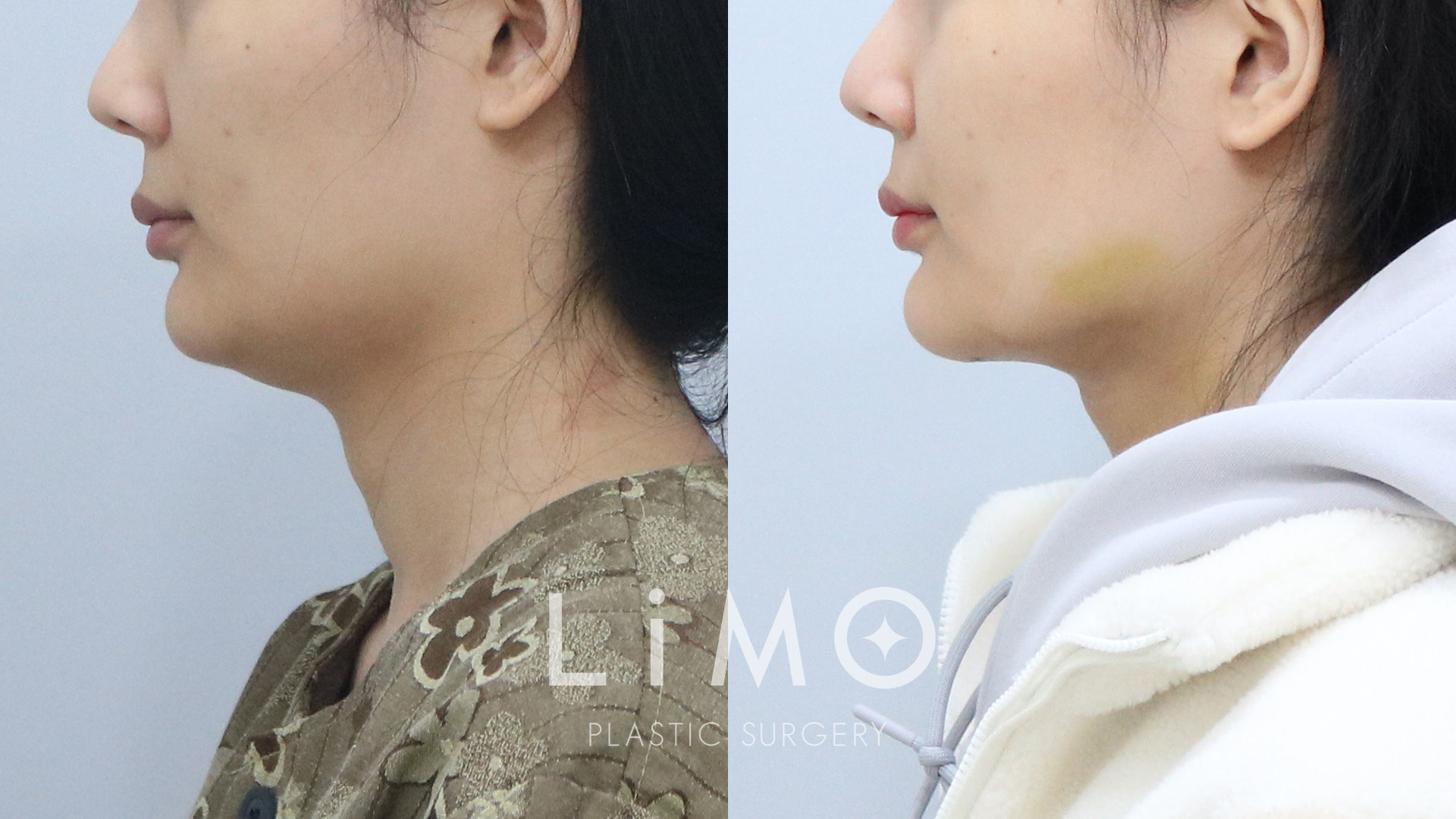 이중턱 근육묶기, 턱끝 지방이식 1주