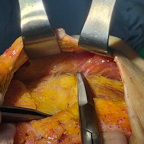 ▲ 근막 재배치 후 제거한 근막