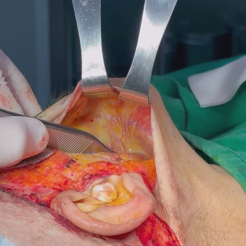 Tension free 하게 SMAS elevation 후 SMAS 고정 진행함, 반대편도 동일하게 진행, 유착은 Lt.가 덜한 상태로 Lt. CMN 최대한으로 제거하기 위해 tension free하게 SMAS 박리 후 남는 SMAS 자르고 고정 진행함.