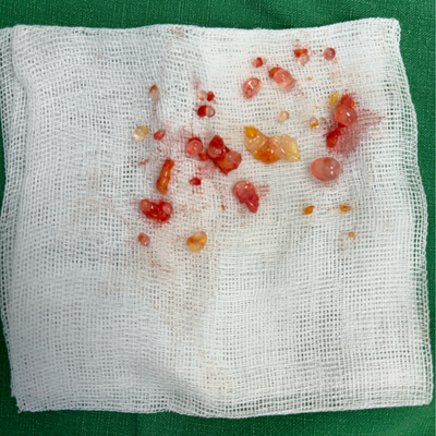 발견할 수 있었습니다. 이물질은 제거 시 피막이 터지면 깔끔한 제거가 어렵기 때문에 산삼을 캐내듯 터지지 않도록 조심스럽게 발라내었습니다.